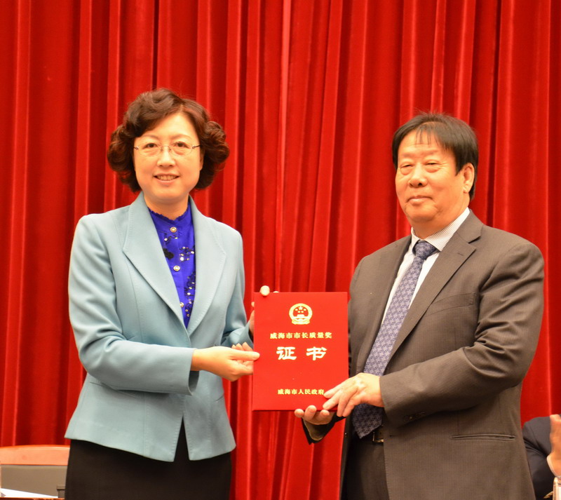 3月30日,威海市质量工作会议在东山宾馆召开。会上,对荣获2015年度威海市市长质量奖的3家企业及2名个人进行了表彰。集团公司王玉春董事长喜获威海市质量领域最高奖,接受了张惠市长亲自颁发的荣誉证书。这也是我市第六届市长质量奖评选,至此,已有18家企业和12名个人获奖。