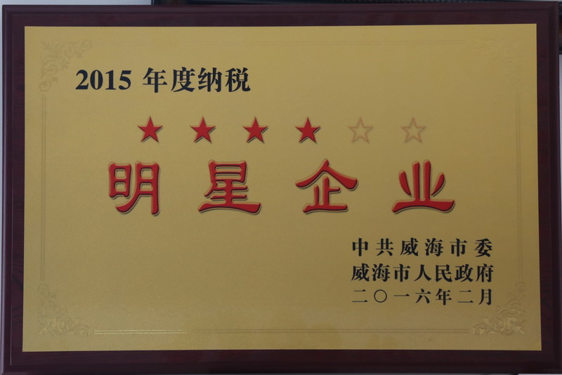 2月14日,在威海市2015年总结表彰大会上,集团公司被市委市政府授予“2015年度纳税四星级明星企业”称号。