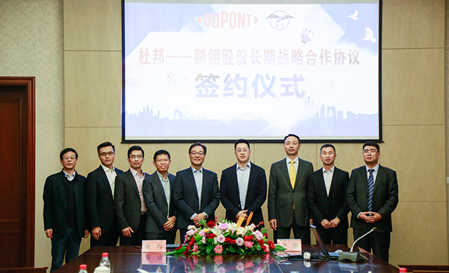 杜邦中国集团有限公司亚太区业务总监曾清树与天津鹏翎集团股份有限公司董事长王志方代表双方签署了战略合作协议。签约仪式上,双方就加深合作进行了坦诚交流和深入探讨,一致表示,将以本次合作为新起点,通过互惠、互利、互信的长期合作,携手并进,互促共赢。