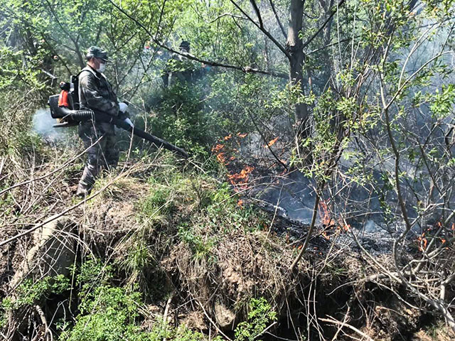 火情就是命令,按照董事长、总经理的指示精神,集团在短短一小时内就迅速集结起300人的救火队伍,配备22辆各式车辆,配备10台灭火机及铁锨、铁扫帚等救火装备,早上7点启程奔赴火场,并临时任命王建波主任为救火现场总指挥。到达指定位置后,王建波主任做简短现场动员后,救火战斗随即展开。王建波主任、王昭财副主任带领60人奔赴某部队营区救火;孙述良主任、程兵主任分两路带领渔业板块、旅游地产板块剩余人员奔赴王家山火场;当日所有参战人员都不畏艰难,顽强奋战,积极配合市里、区里指挥部领导的现场指挥,较好地完成了扑灭明火、消除隐火、开辟隔离带等救火任务。