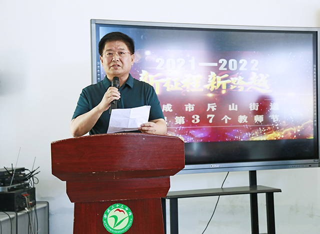 斥山街道党工委殷波书记对学校教育工作做了指导讲话并向全体教师送上了节日祝福。