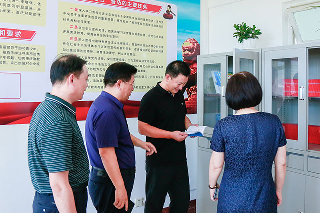 8月27日上午,威海市司法局调研员隋枢勋等一行三人来公司检查指导集团七五普法活动开展情况,荣成市司法局林华芹局长等陪同调研,集团公司常务副总经理王善强及“七五”普法领导小组成员现场接待并汇报相关情况。