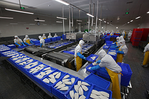 我公司主要有三大特色:第一,生产规模大。公司拥有20万吨冷链物流库,鱿鱼系列产品年加工能力可达10万吨;第二,出口创汇高。公司的鱿鱼产品主要销往欧洲、美洲、澳洲、非洲等30多个国家和地区,2019年出口创汇1.2亿美元;第三,设备工艺先进。公司通过引进国际先进的意大利和西班牙鱿鱼自动化加工设备,并结合自主创新设计形成了全套流水线加工工艺,提升加工效率40%以上,其中多项技术工艺均属于自主研发;在制冷设备上全部采用二氧化碳制冷技术,从根本上解决了液氨制冷带来的安全隐患。