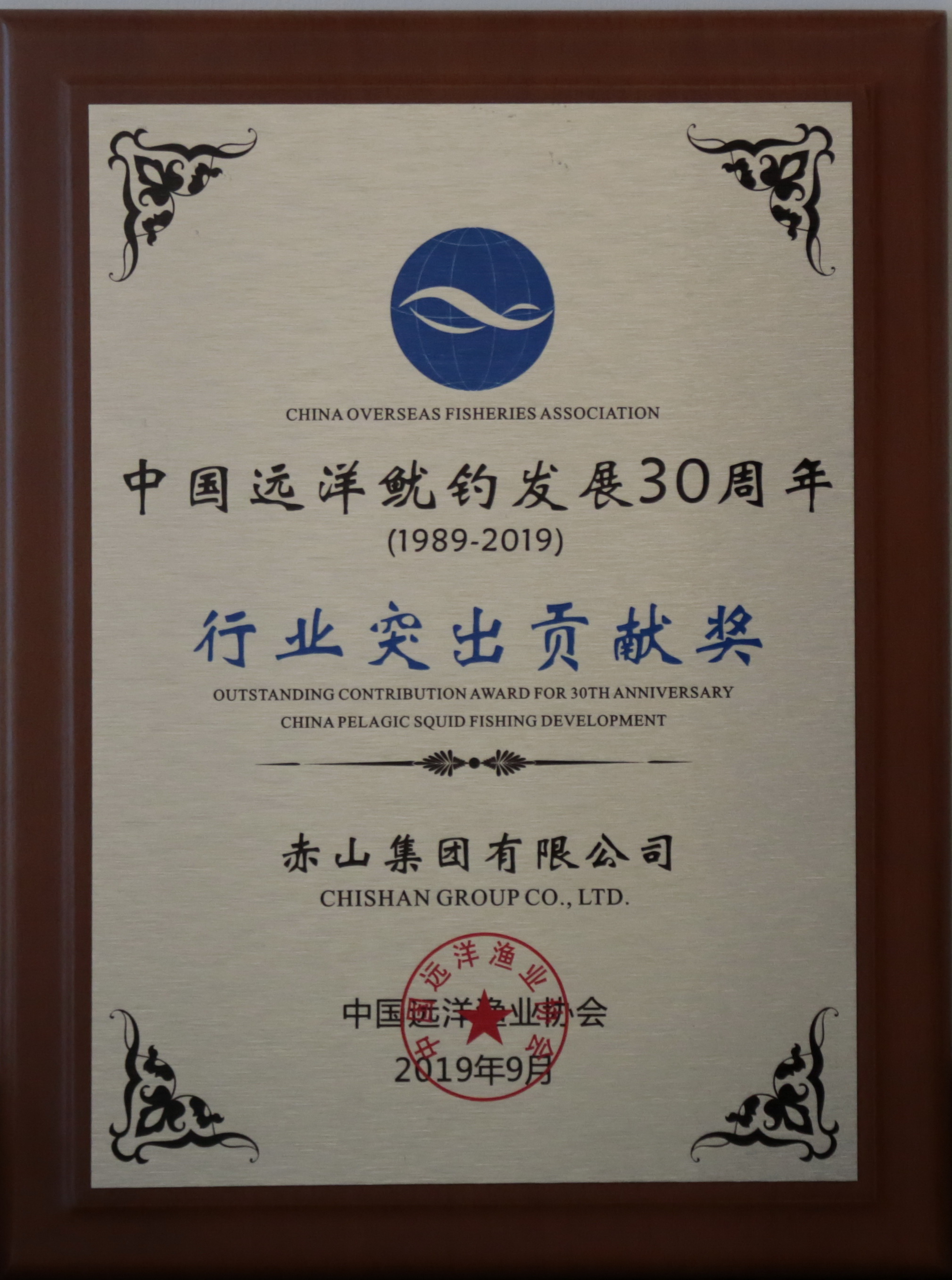 中国远洋鱿钓发展30周年行业突出贡献奖
